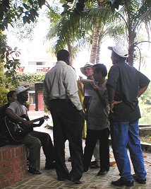 games after breaks and lunch. So, we put everyone into 5 teams and had them running around a tree in lungis, carrying water