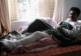 I thought it was about time you saw a picture of Habib with his broken leg, so here it is. He's been bed-ridden for a fair