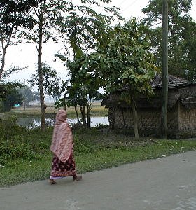 hamlet and hence surrounded by fields, mud huts and reed houses. The picture above left